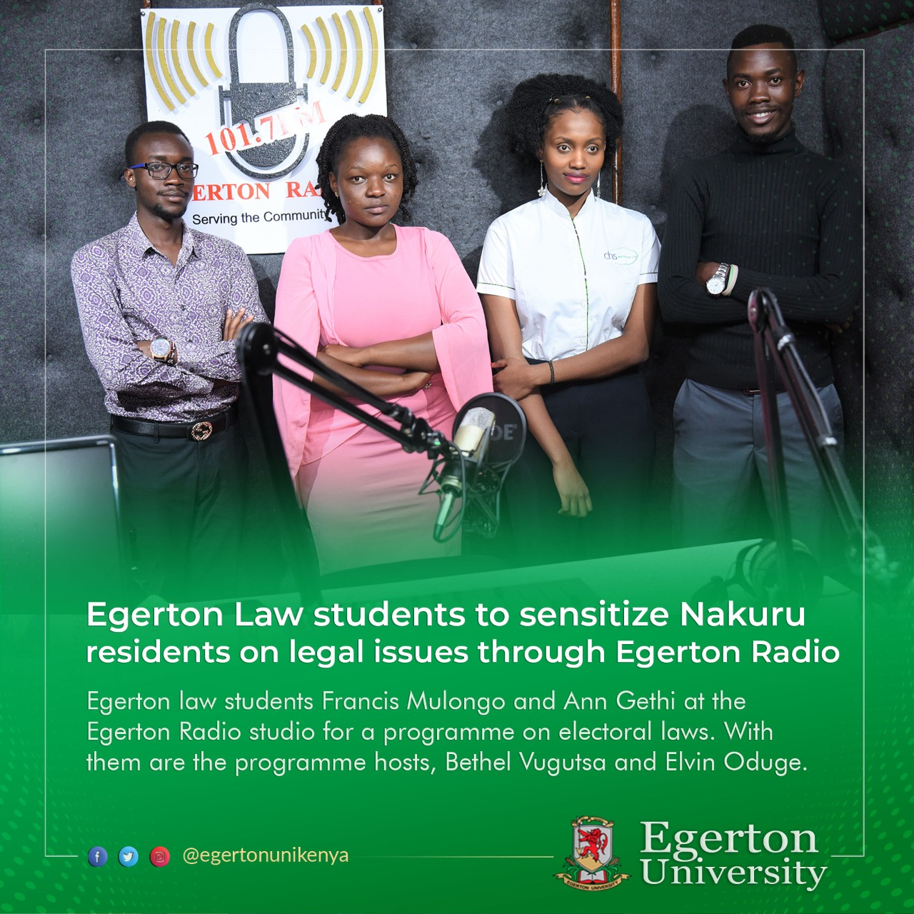 The Faculty has four departments and offers four undergraduate degree programmes, namely Bachelor of Science in Agricultural Engineering, Bachelor of Science in Water and Environmental Engineering, Bachelor of Science in Manufacturing Engineering Technology, and Bachelor of Science in Instrumentation and Control Engineering. All our programmes are accredited by the Commission for University Education, and we make a point of updating them regularly as required by the regulator.